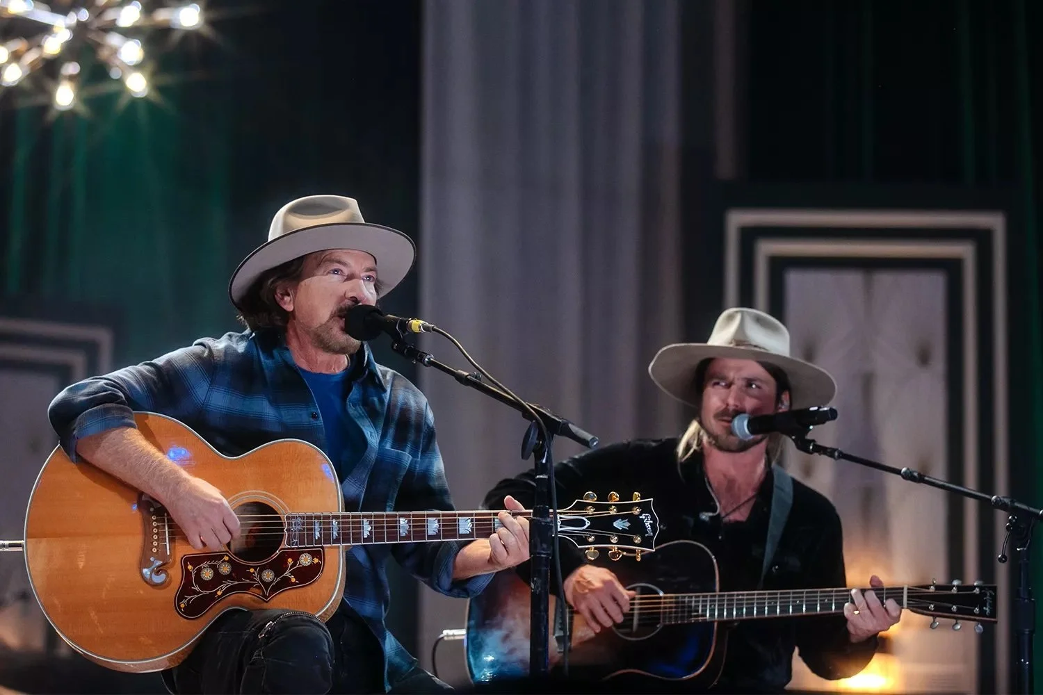 Eddie Vedder, co-founder of the EB Research Partnership, performs at Reportin’ For Duty.
